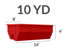 The 10-yard is the smallest roll-off dumpster we offer. They are the perfect size to fit in even the smallest of residential spaces yet can hold hold plenty of junk! Our 10-yard dumpster is the ideal solution for small cleanout projects to mild home renovations.