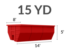 Our 15-yard dumpster is our mid-sized dumpster rental option. This size is perfect commercial jobs, home renovations, landscaping projects, and more. This heavy-duty dumpster can hold 2 tons of junk safely and reliably.