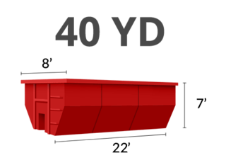 Our 40-yard dumpster is our extra largest bin option. This dumpster can assist with any size cleanup, commonly rented for commercial and residential use. Great for demolition, roofing, and much more.